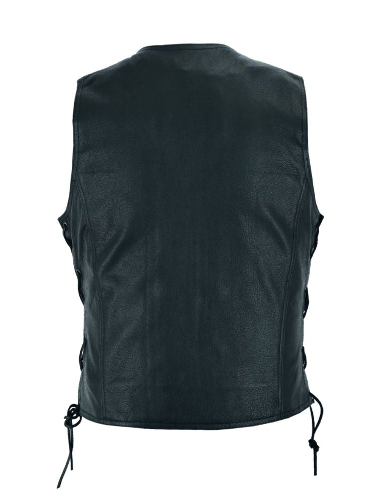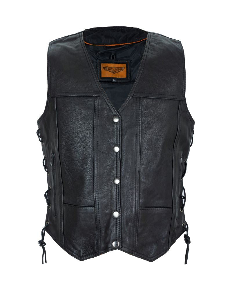 Womens Cowhide Leather Motorcycle 7 Pockets Vest with Conceal Carry Pockets