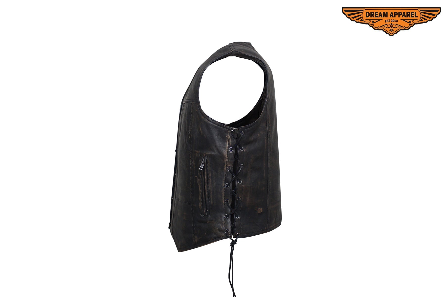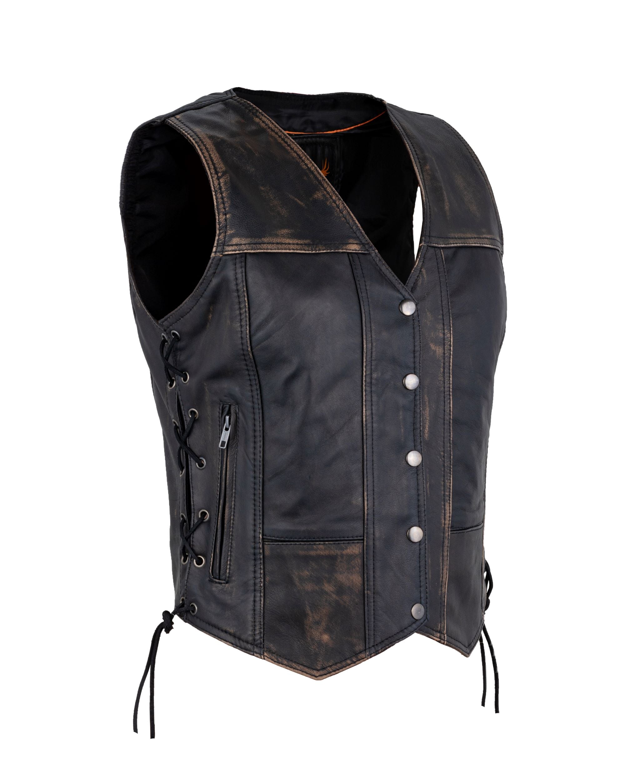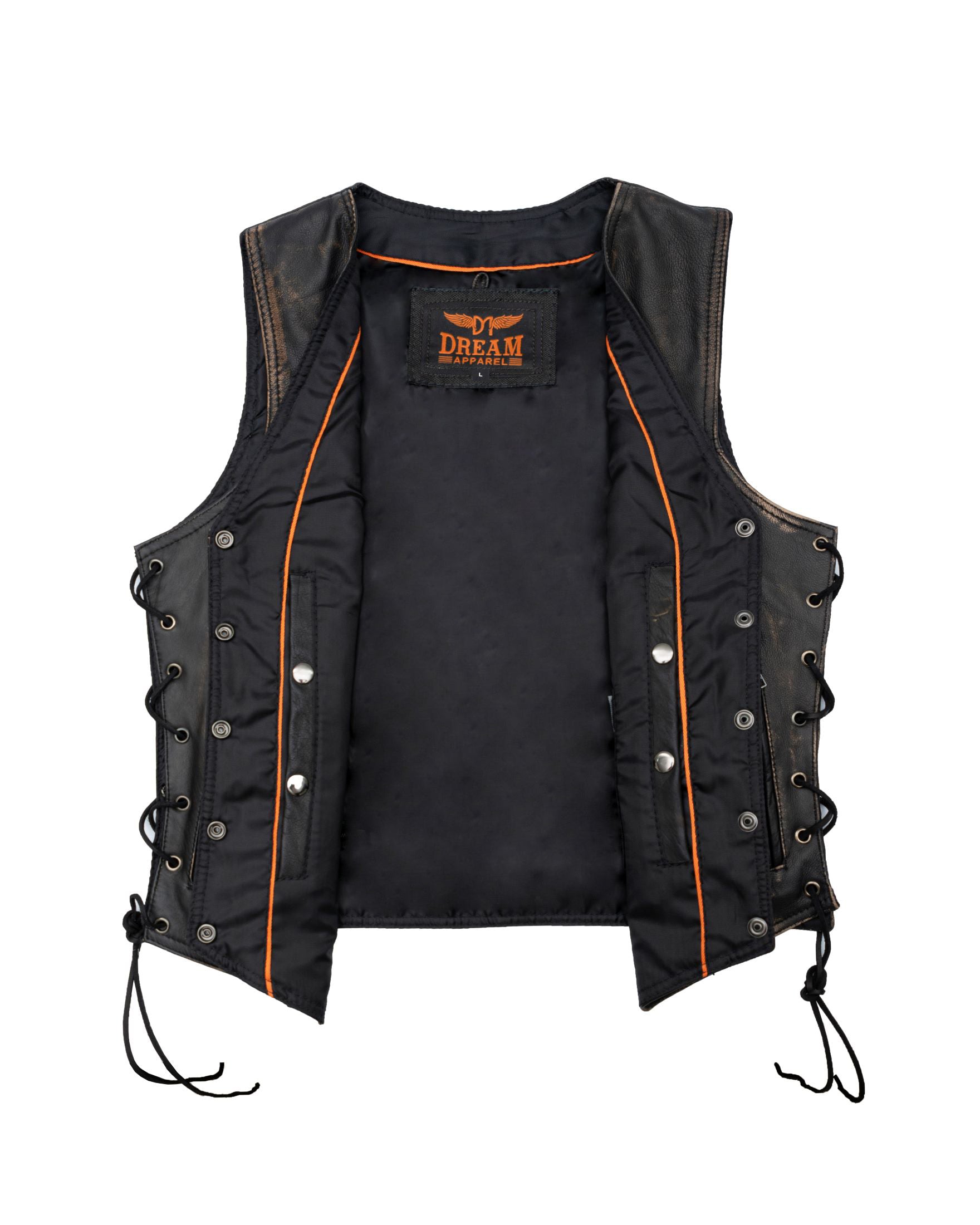 Womens Distressed Brown Naked Cowhide Leather Vest
