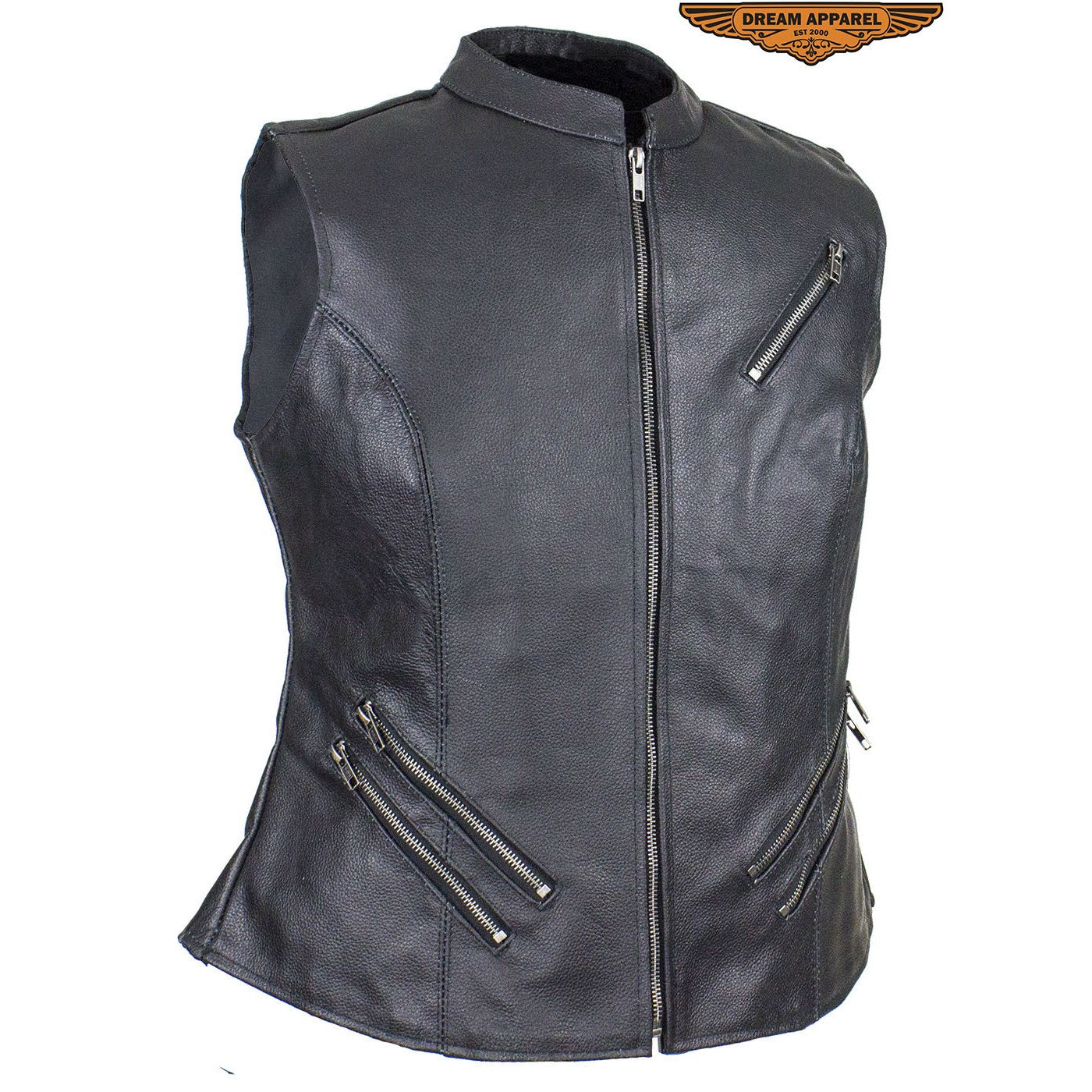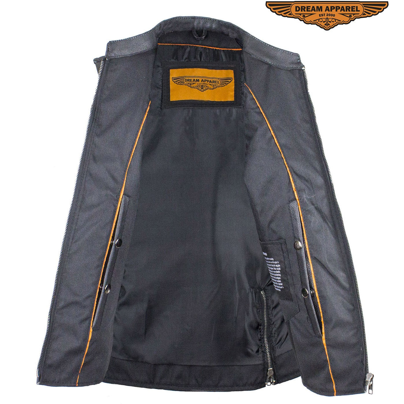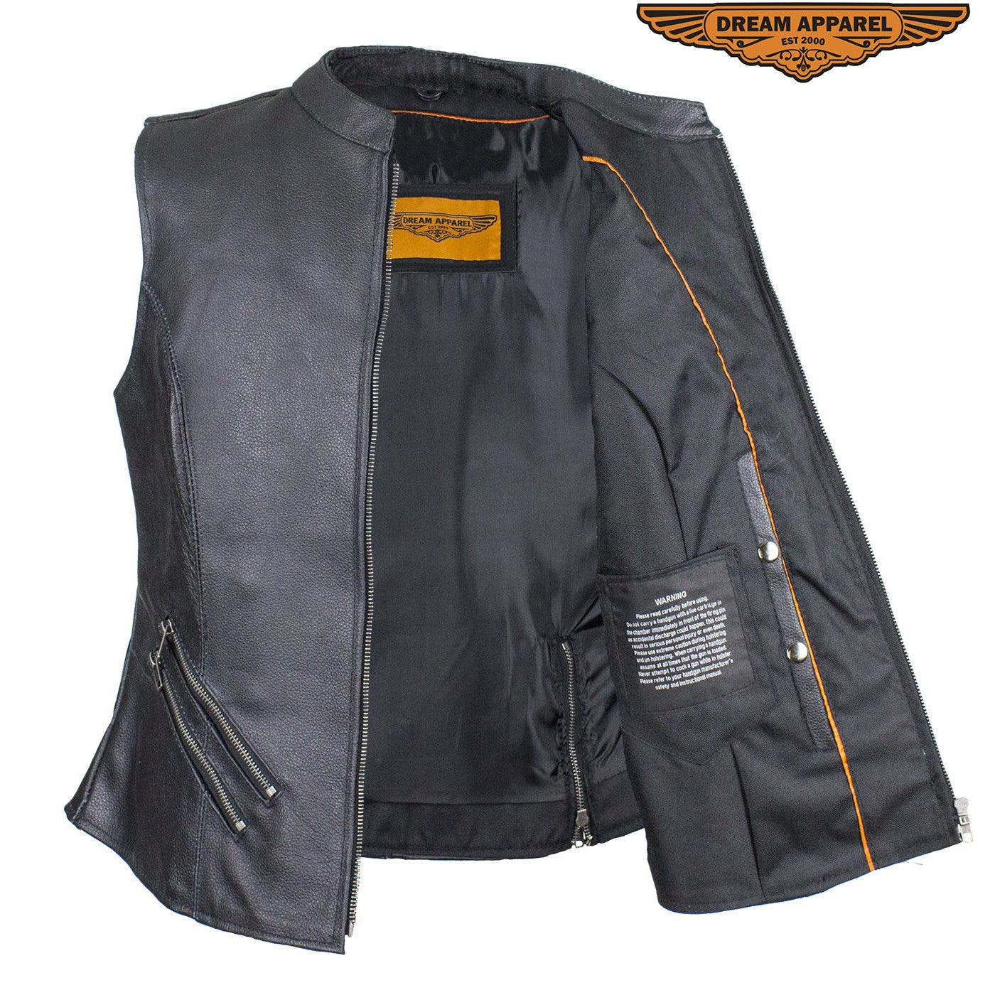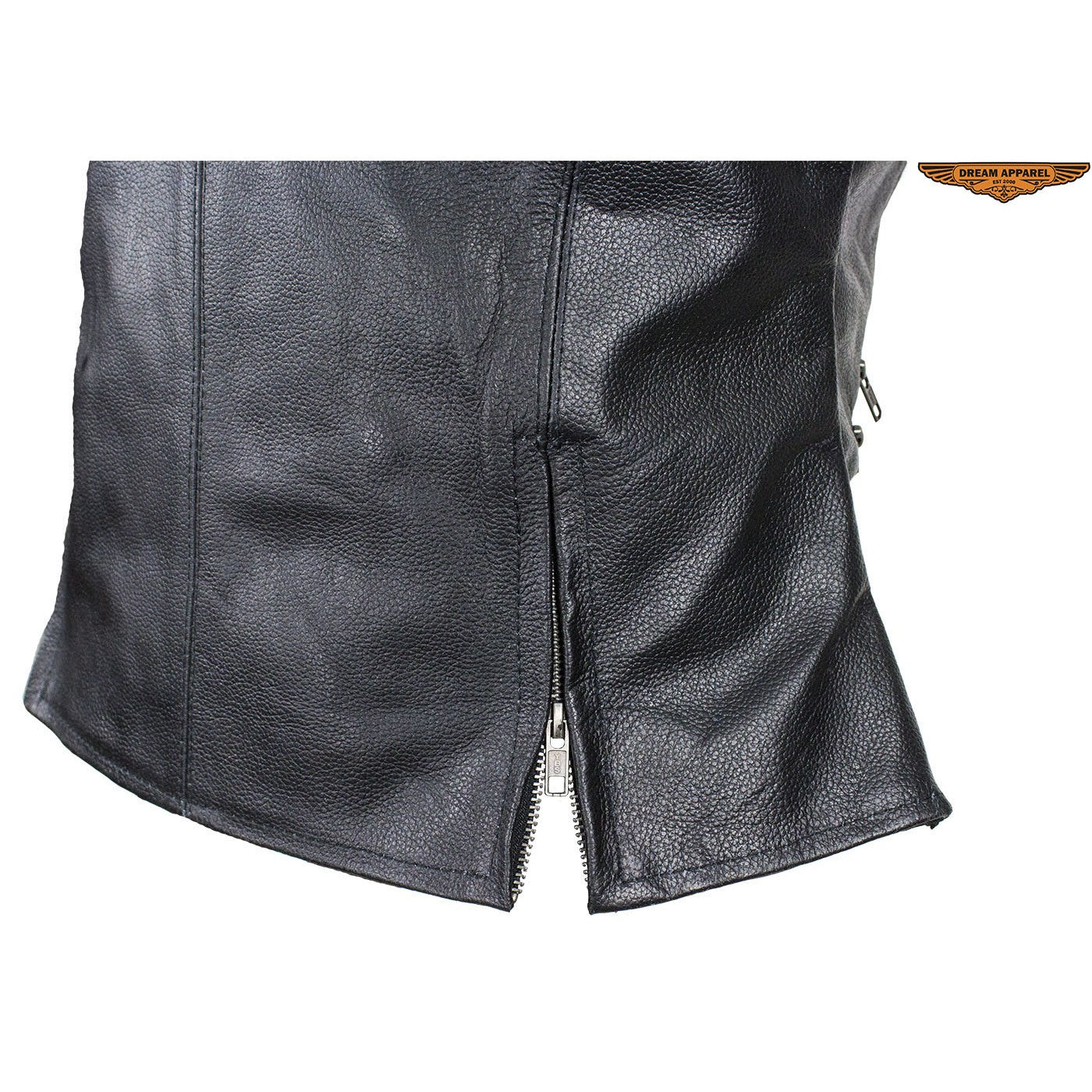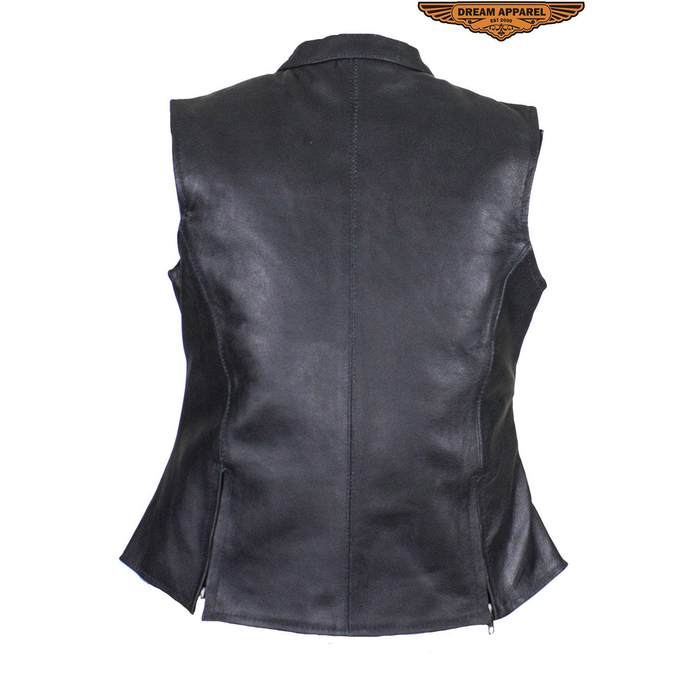 Womens Leather Vest With Two Gun Pockets & Zippered Lower Back