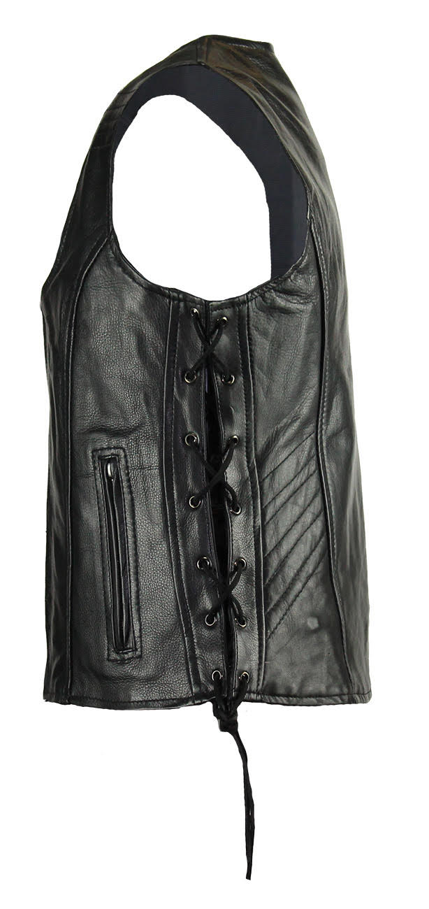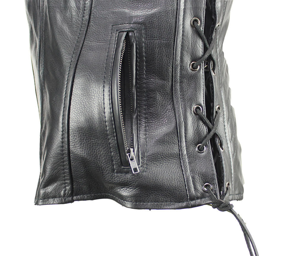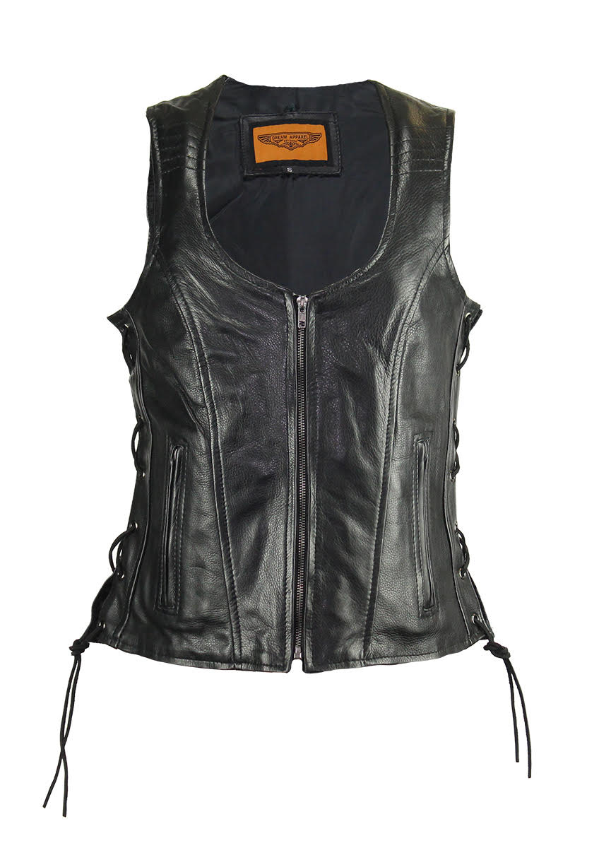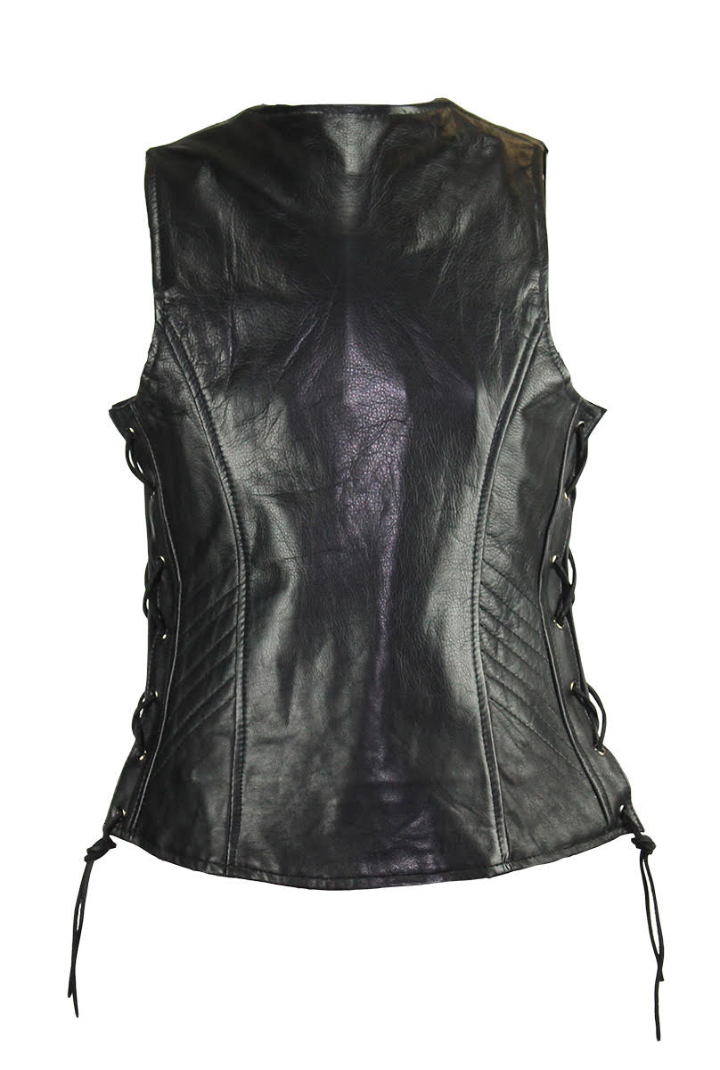 Women's Motorcycle Black Naked Cowhide Leather Vest