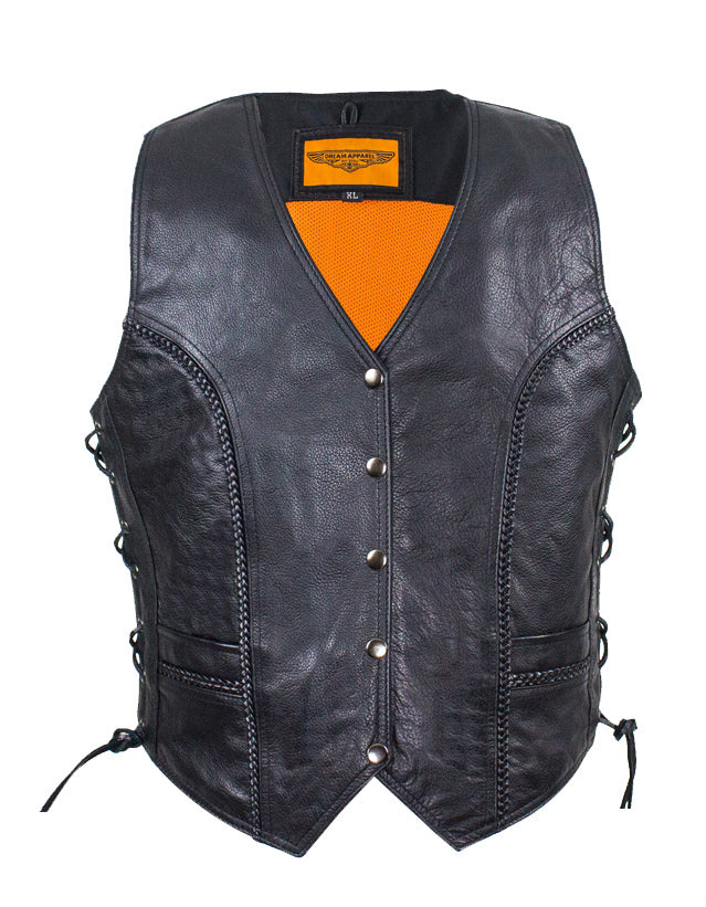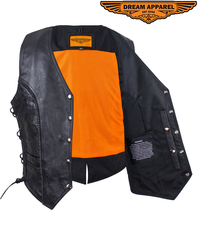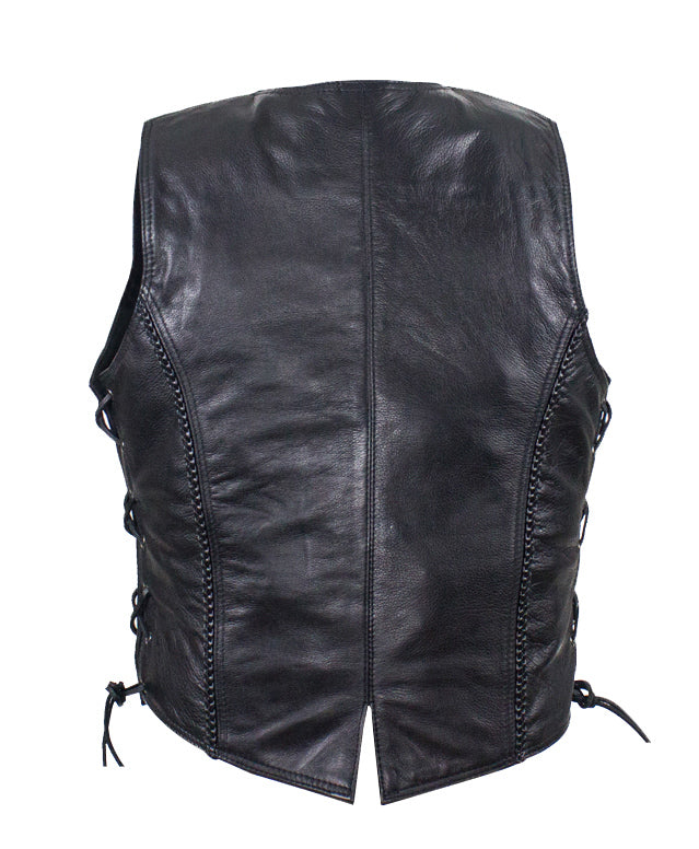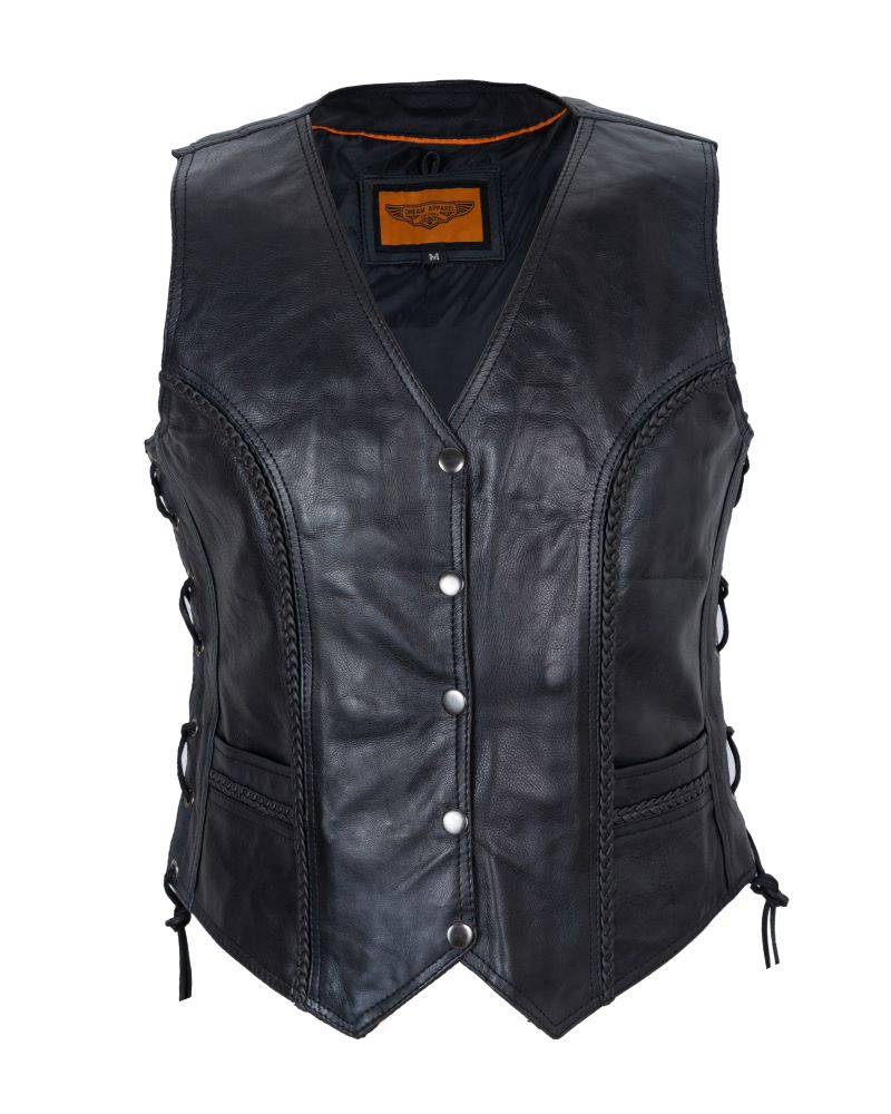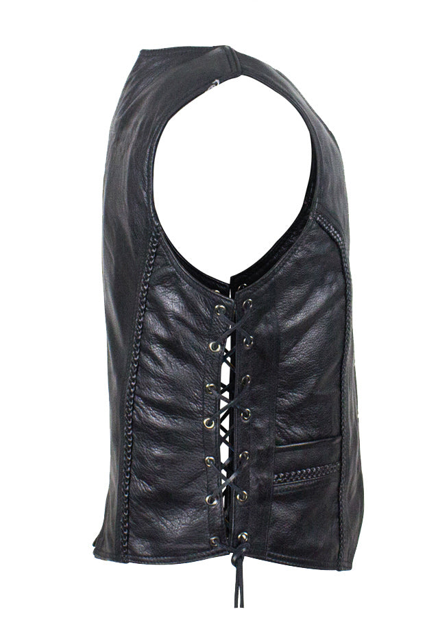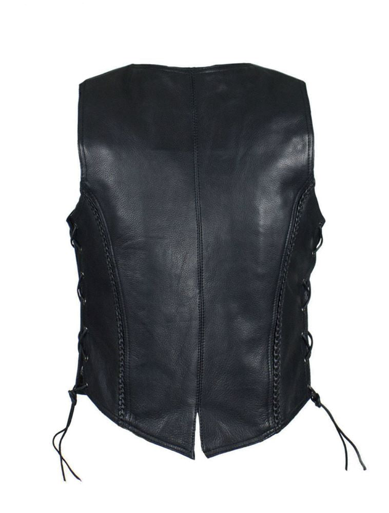 Womens Motorcycle Vest With Braid and Side Laces Conceal Gun Pockets
