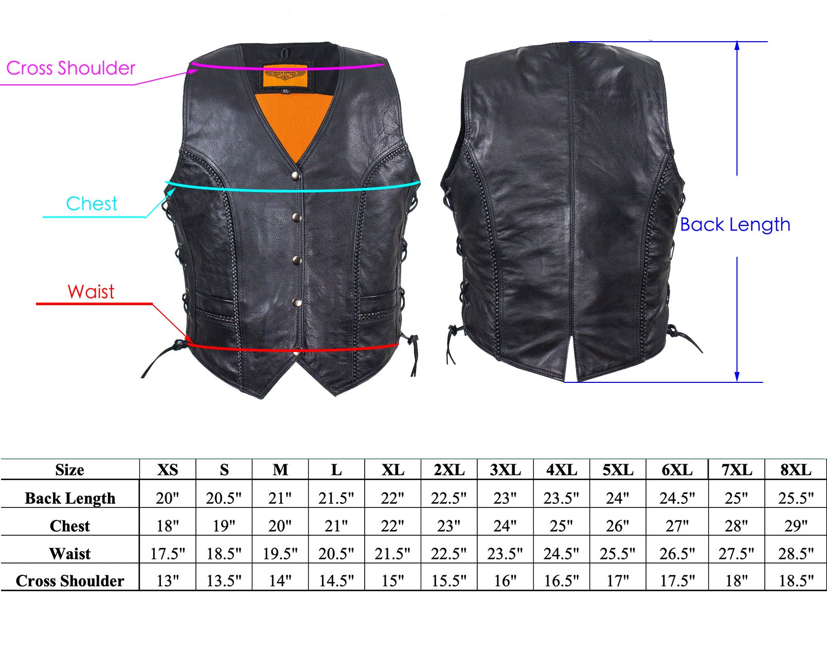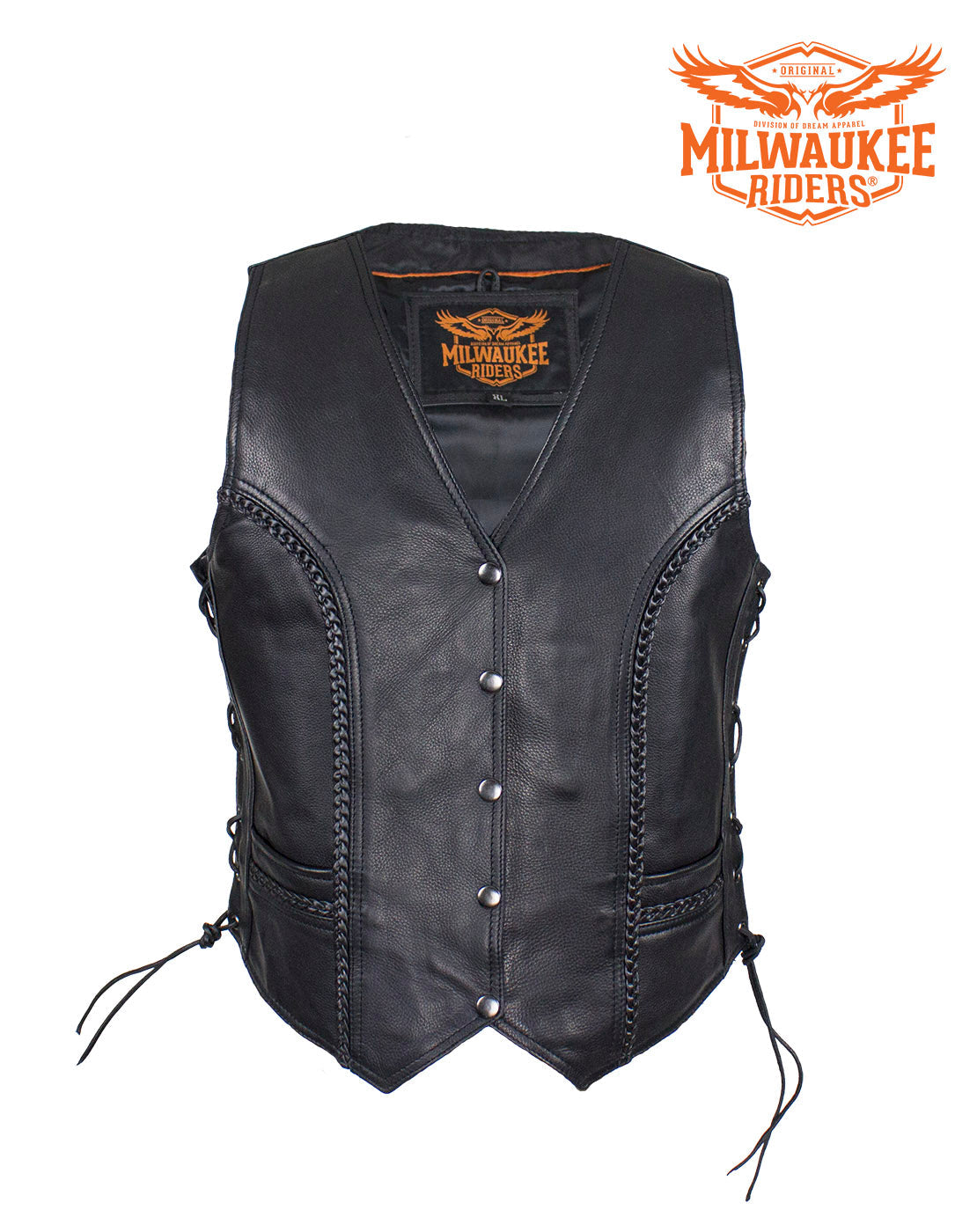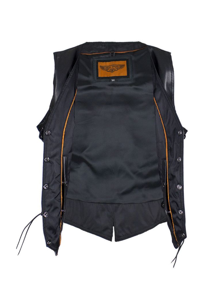 Womens Motorcycle Vest With Braid and Side Laces Conceal Gun Pockets