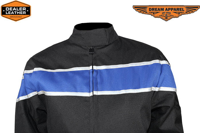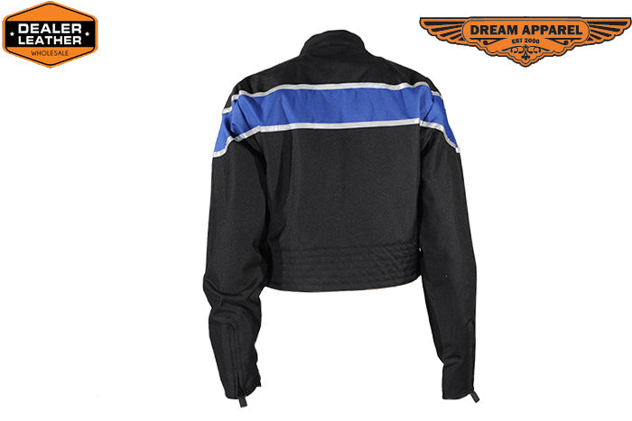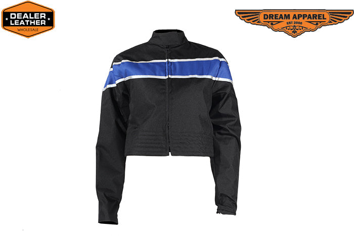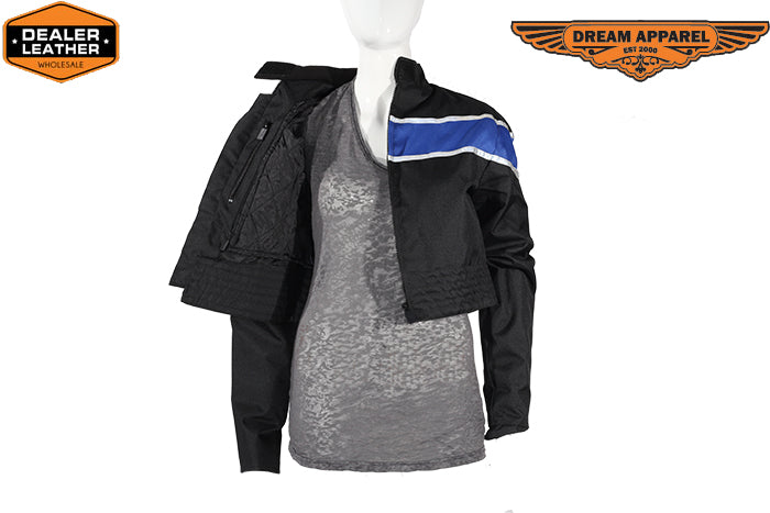 Women's Black Lightweight Textile Jacket W/ Blue Stripe