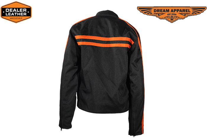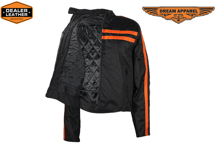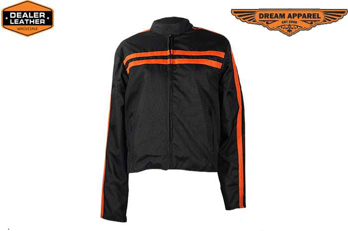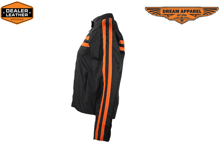 Women's Black Lightweight Textile Jacket W/ Orange Stripes