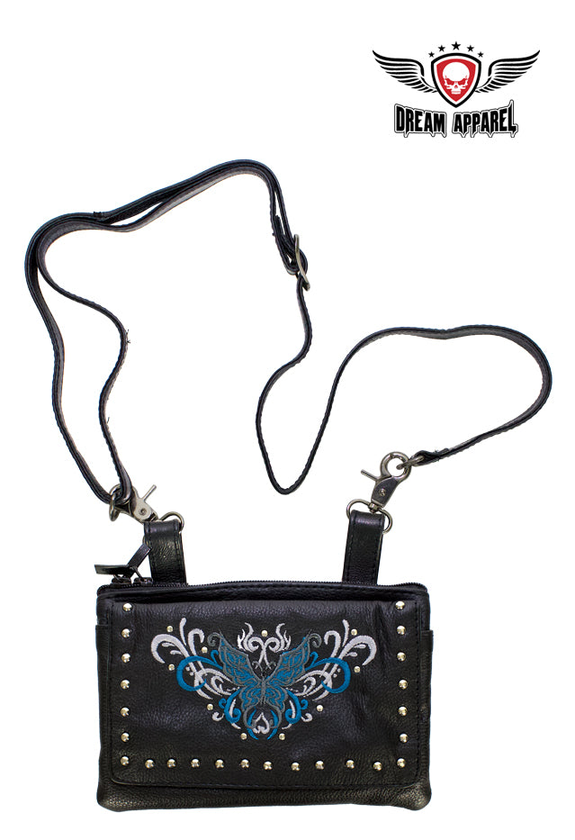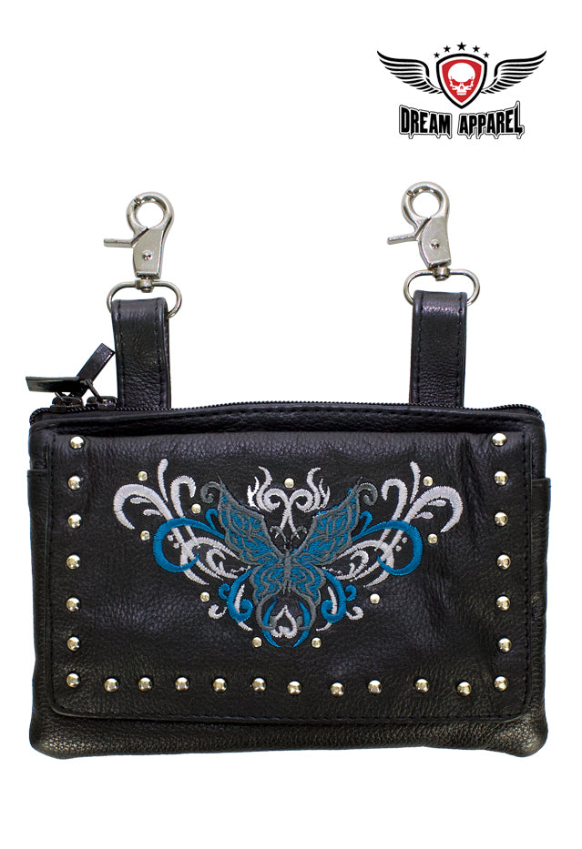 All Naked Cowhide Leather Turquoise Butterfly Belt Bag