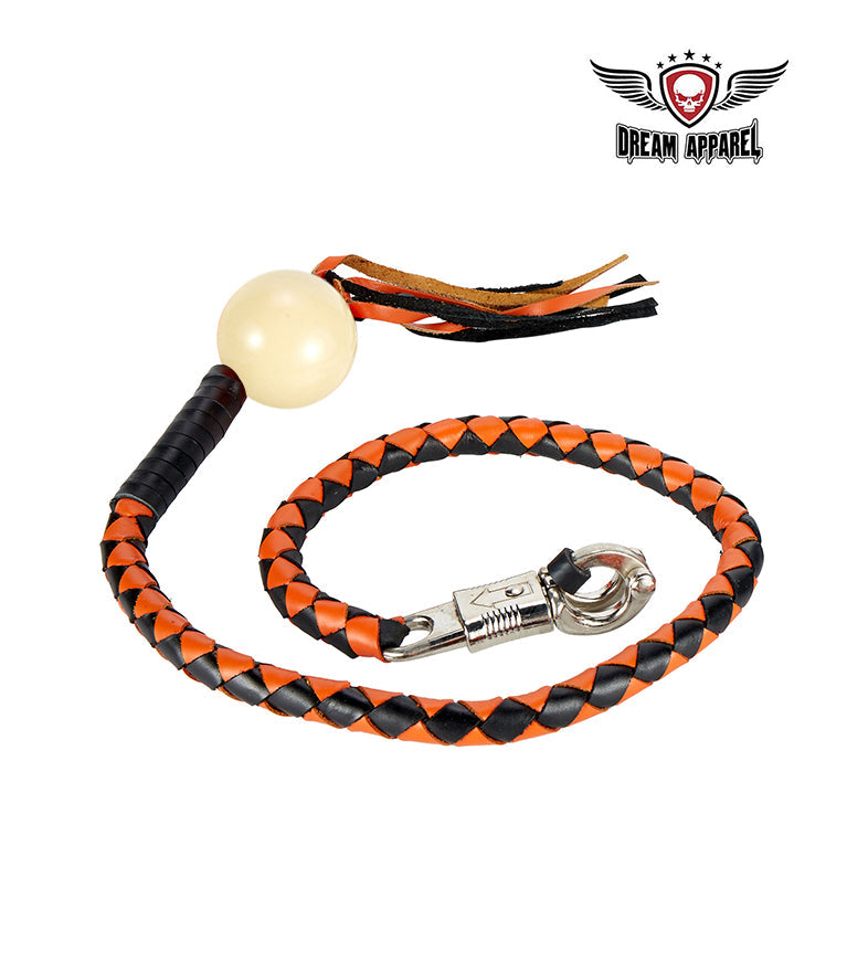 Black And Orange Fringed Get Back Whip With White Pool Ball