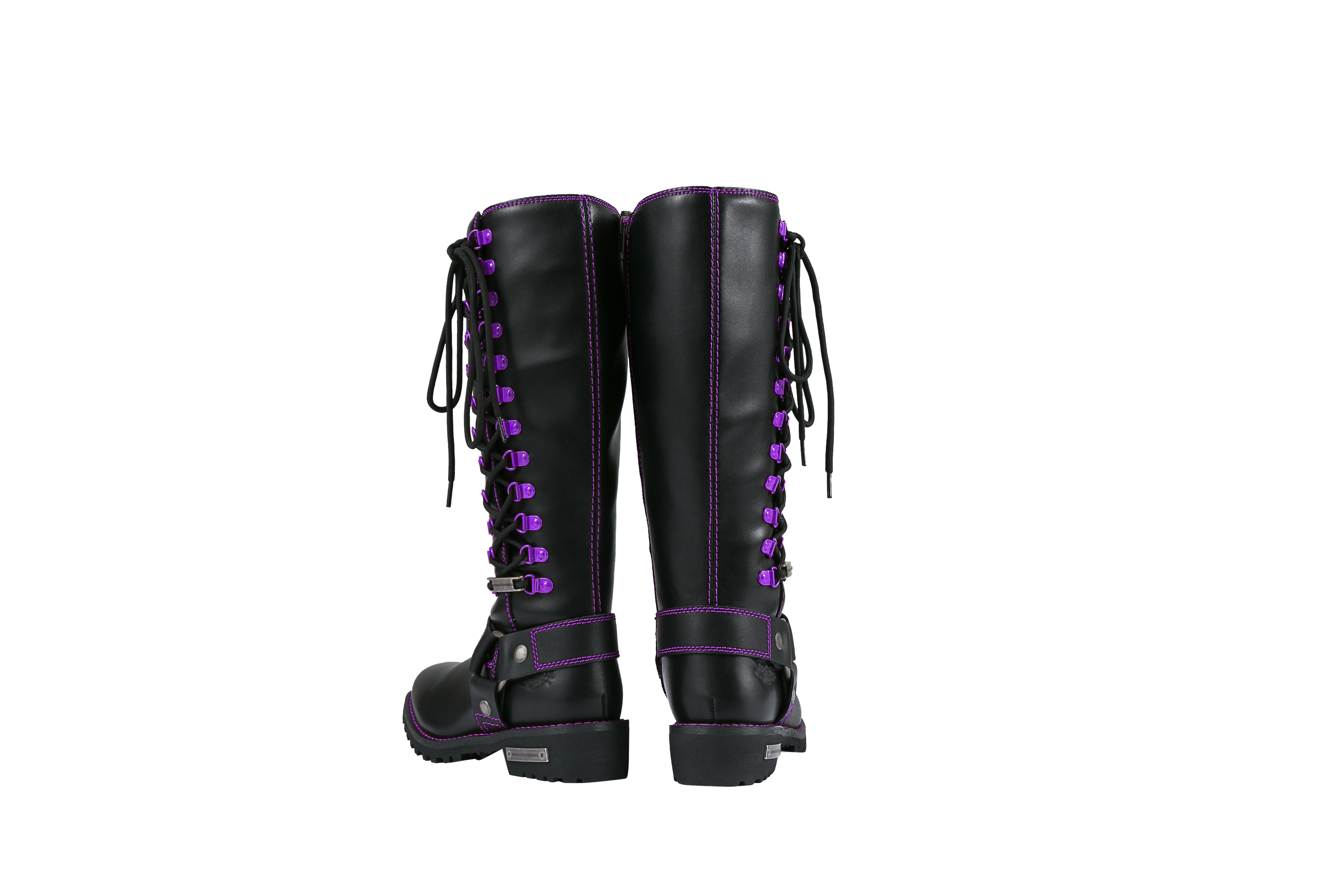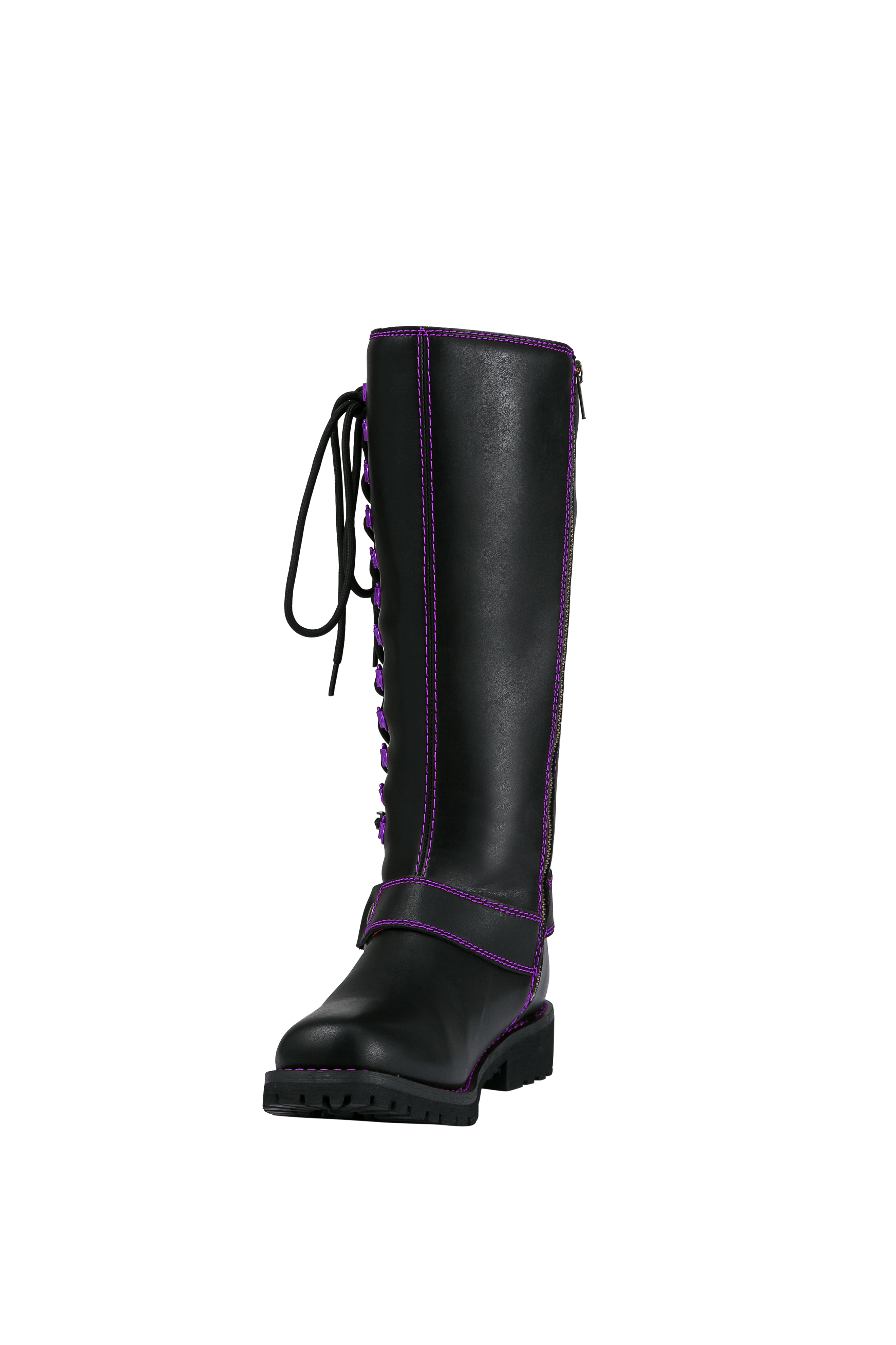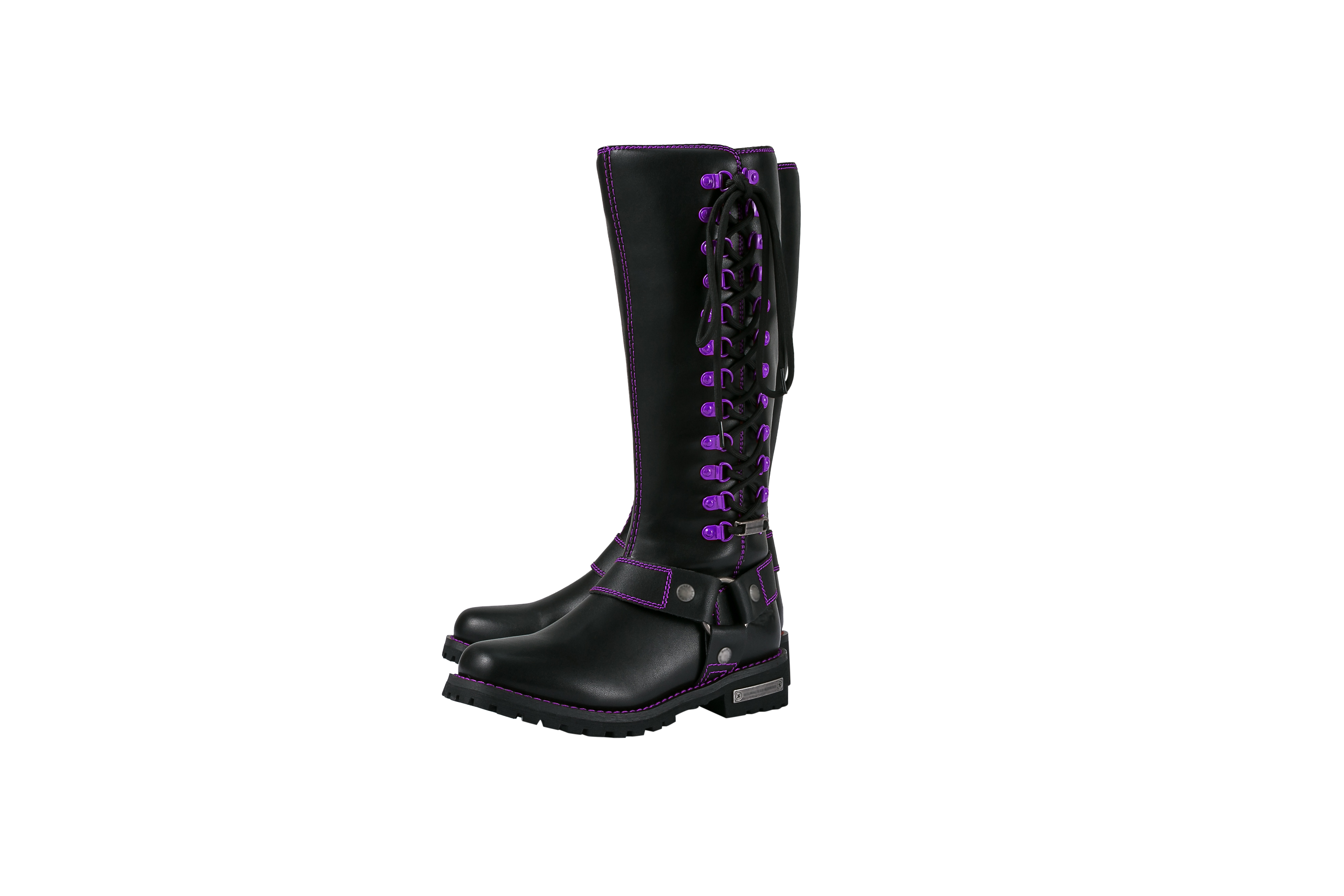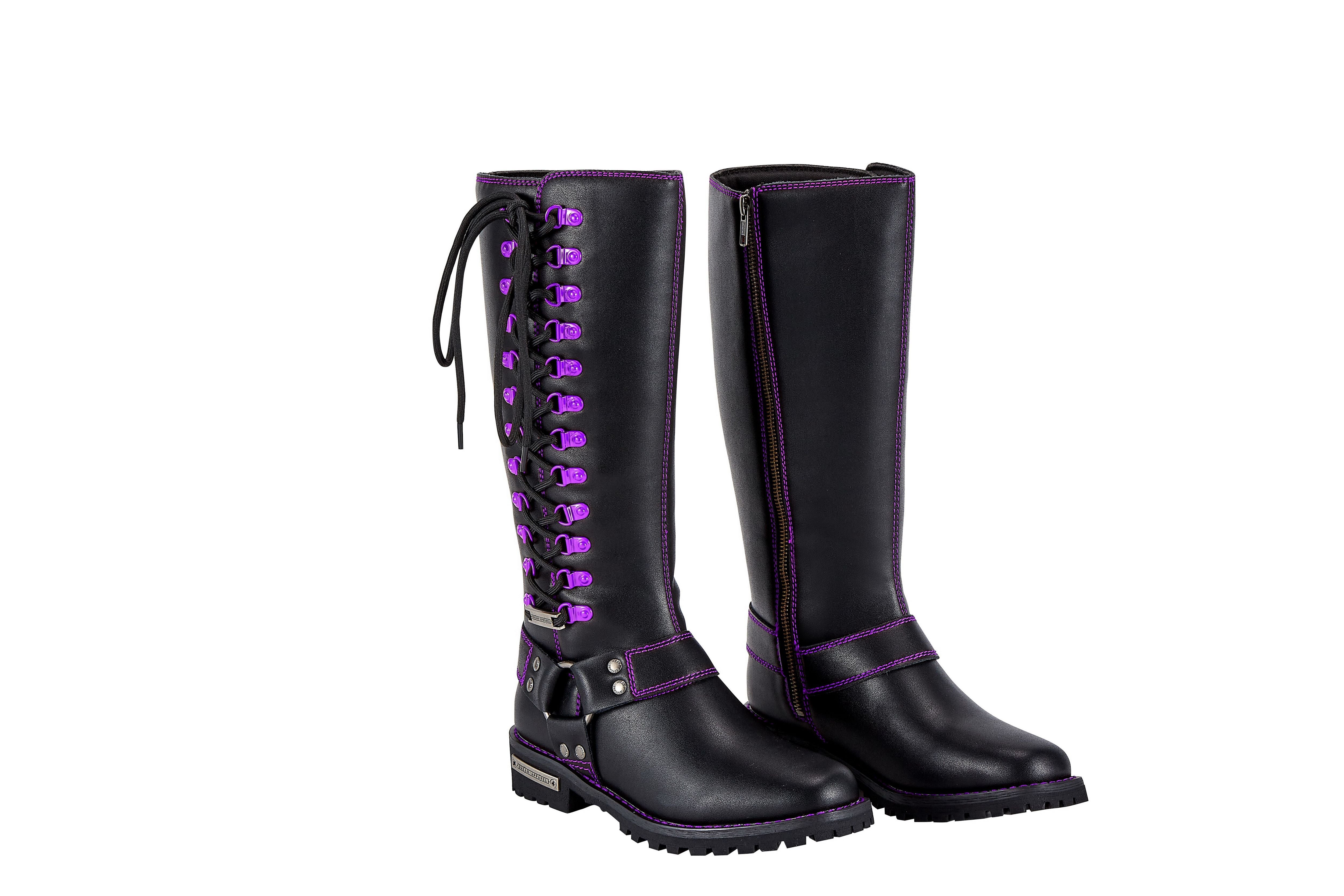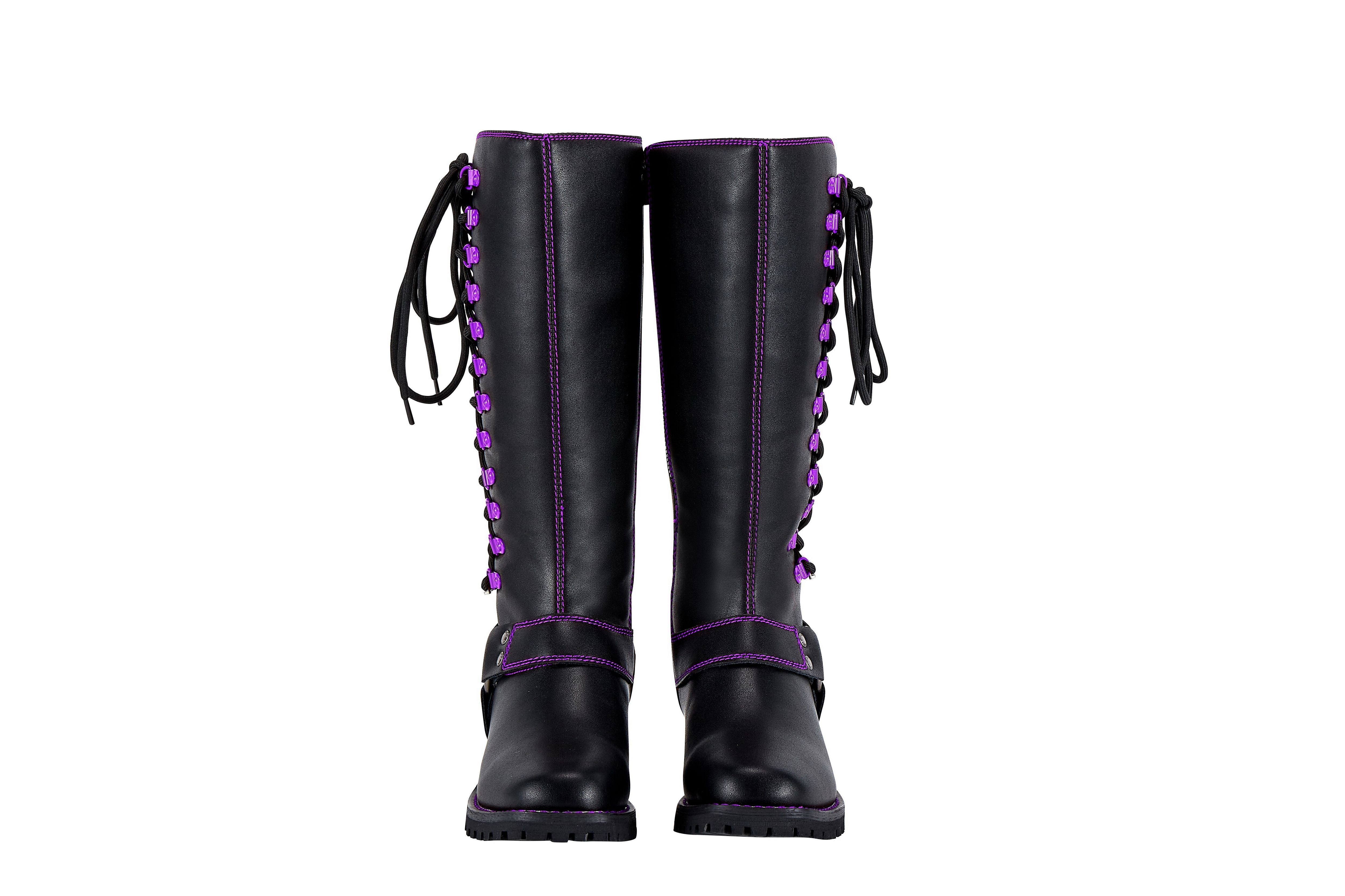Dream Apparel® Women Biker Long Boots with Purple Laces