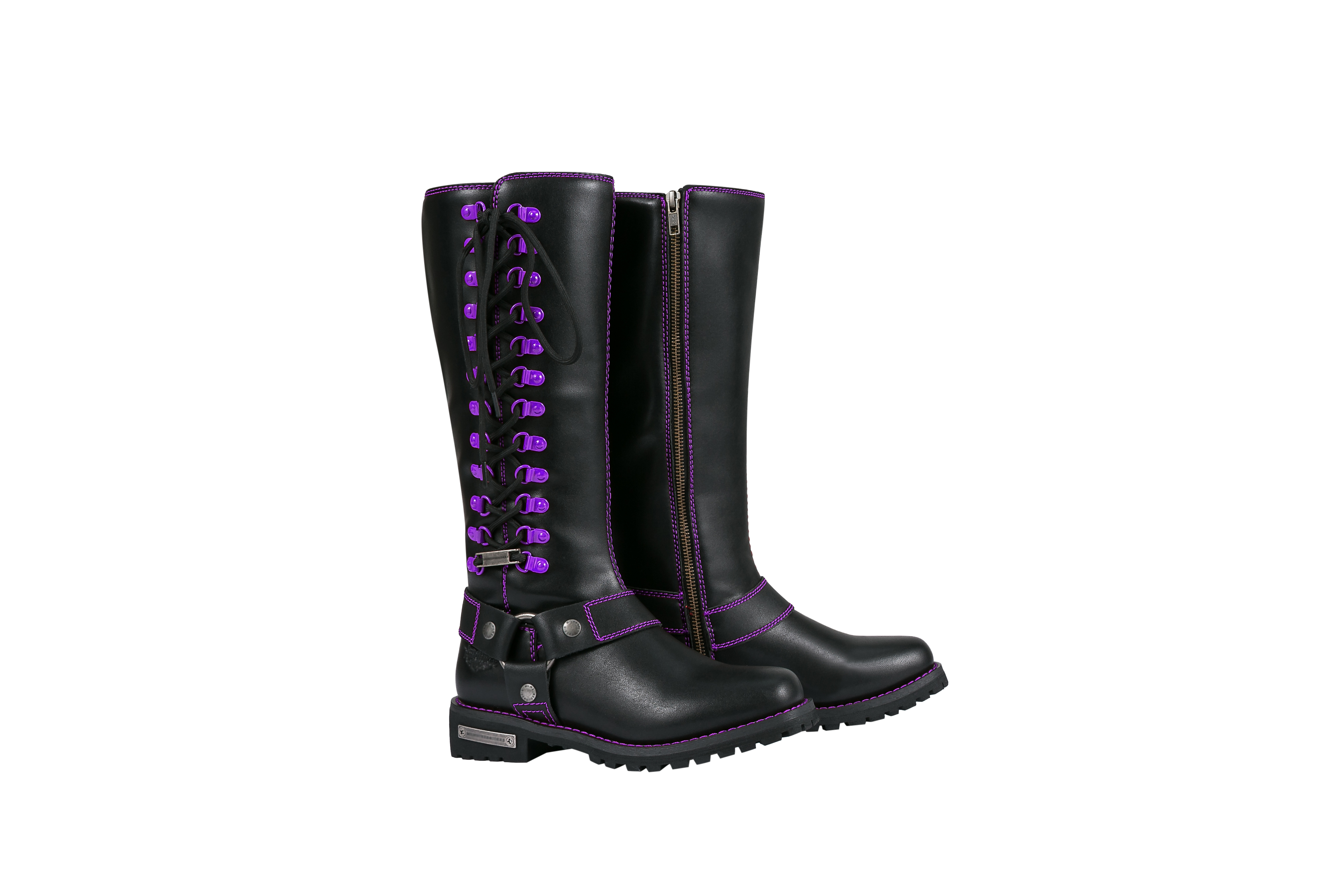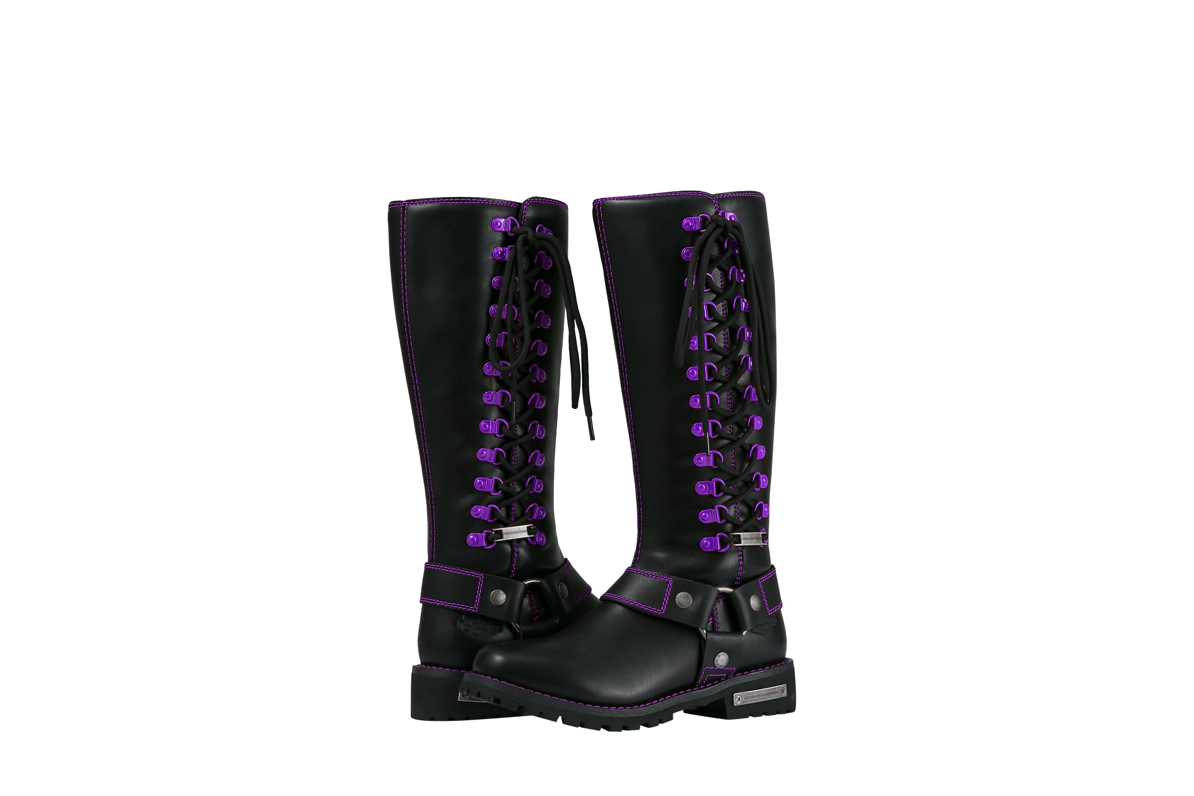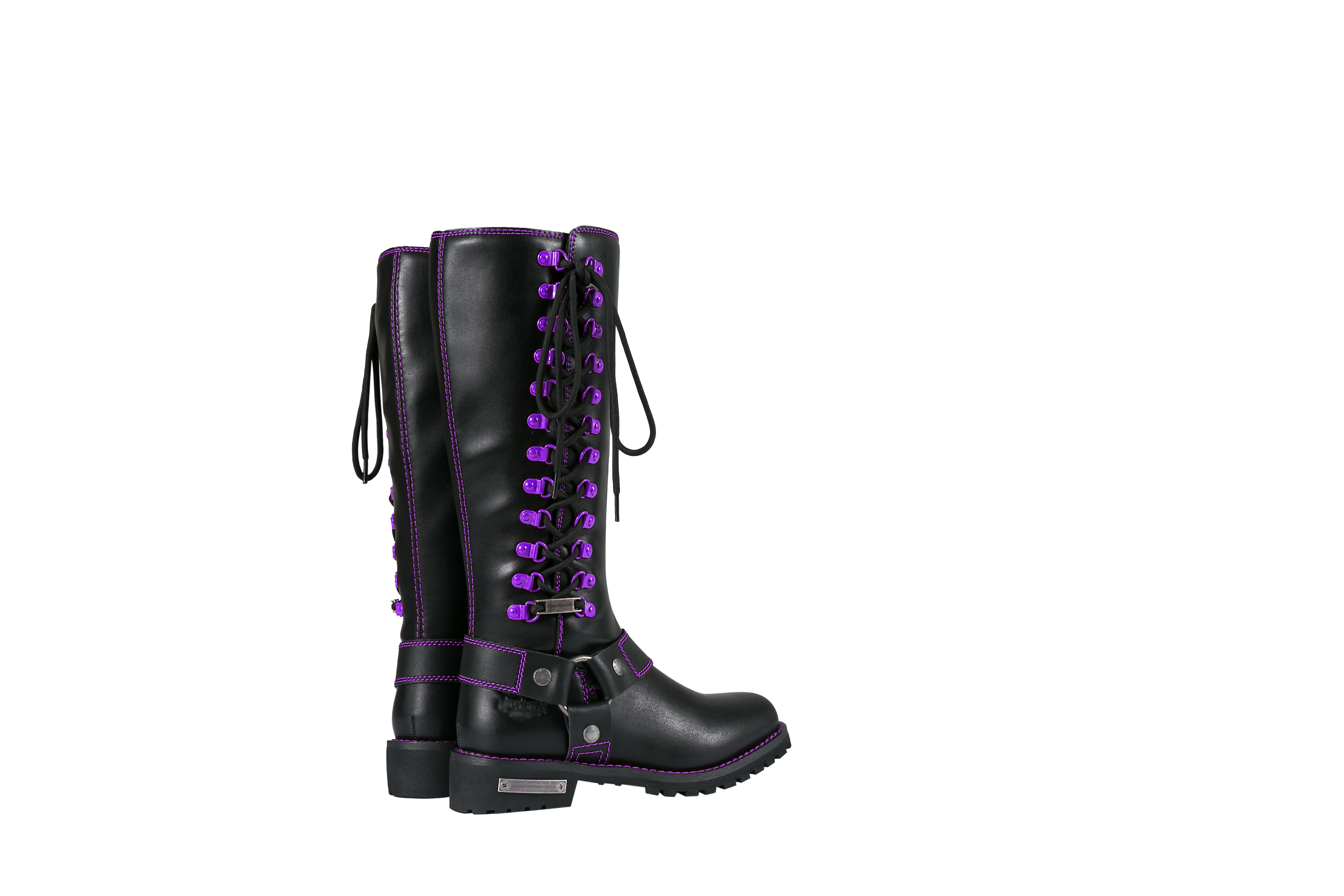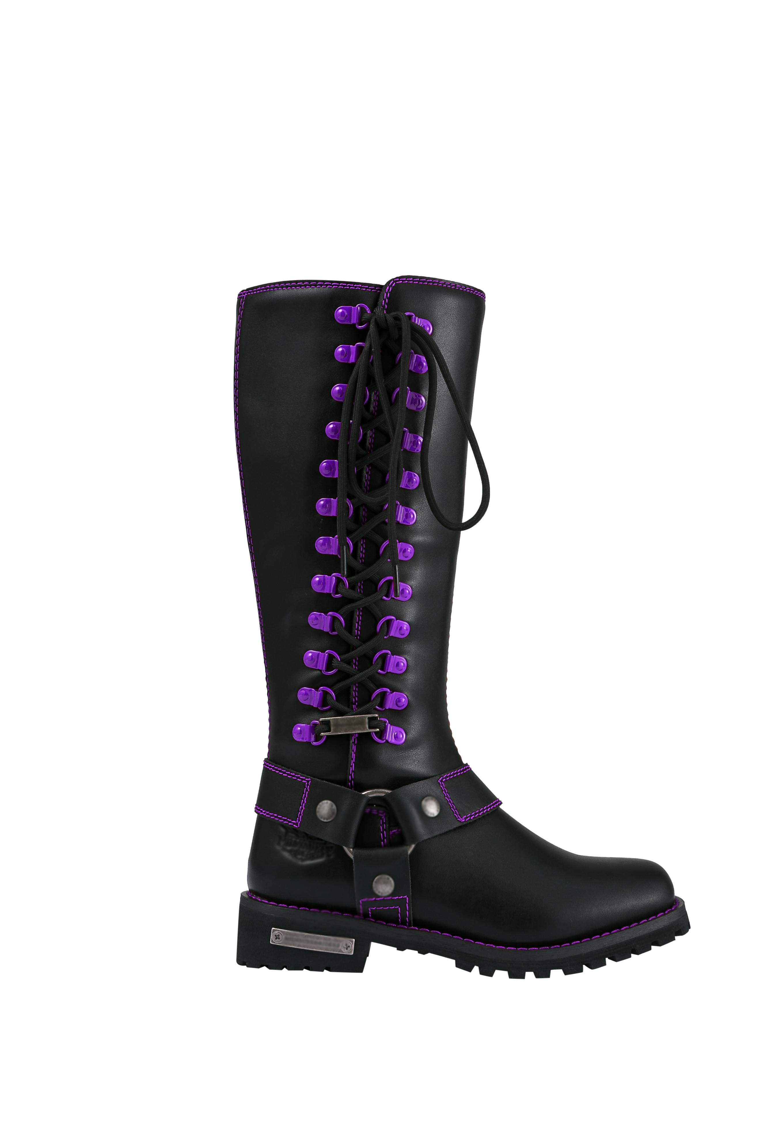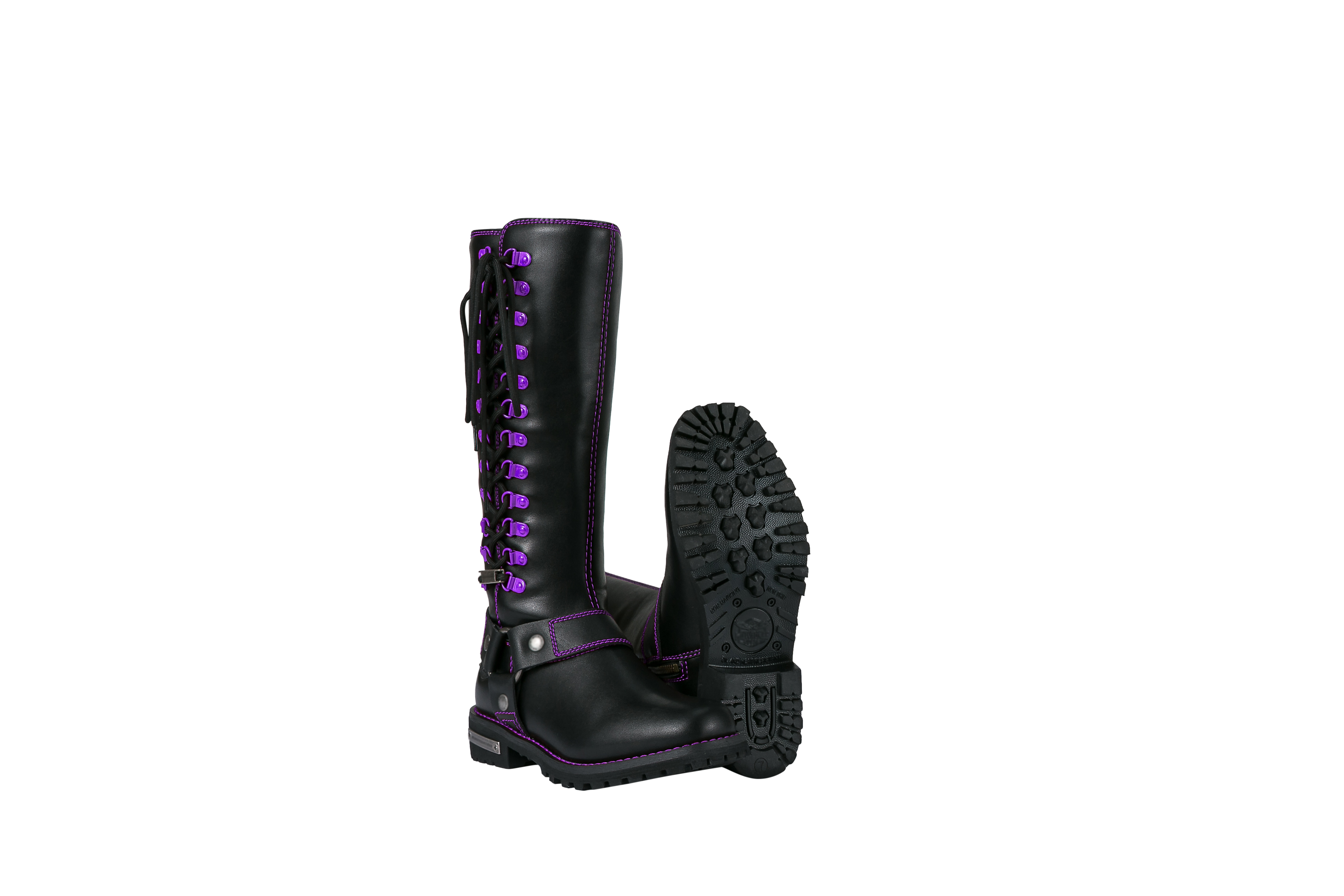 Dream Apparel® Women Biker Long Boots with Purple Laces