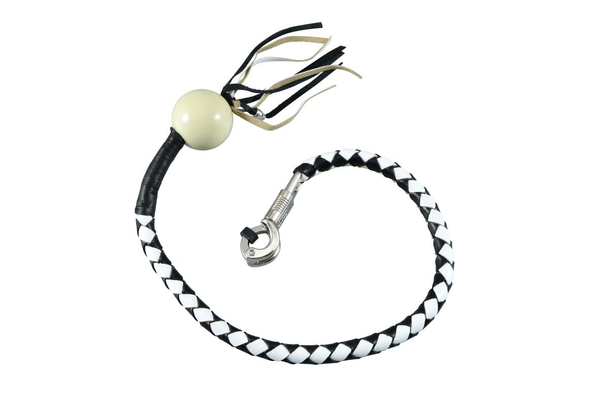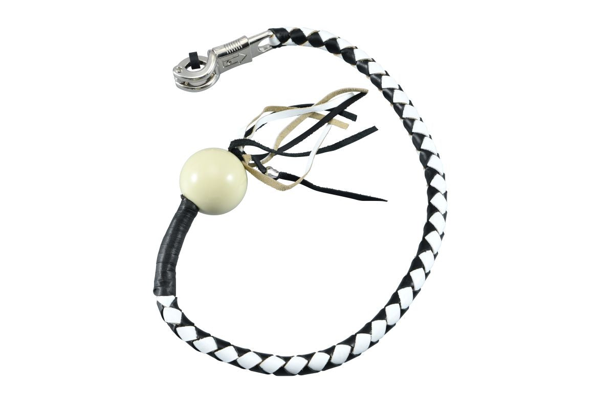 Dream Apparel 36" Long Black And White Fringed Get Back Whip With White Pool Ball