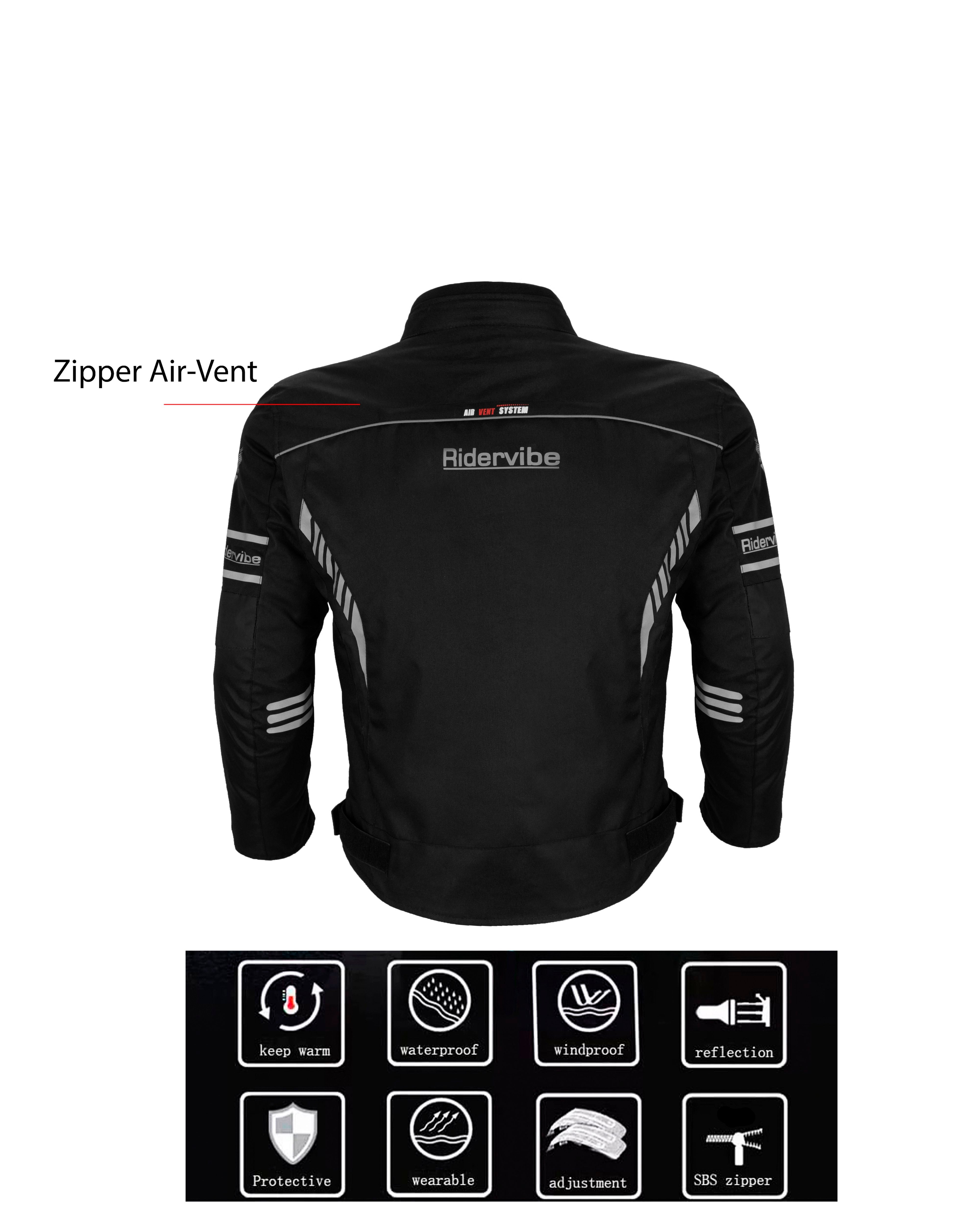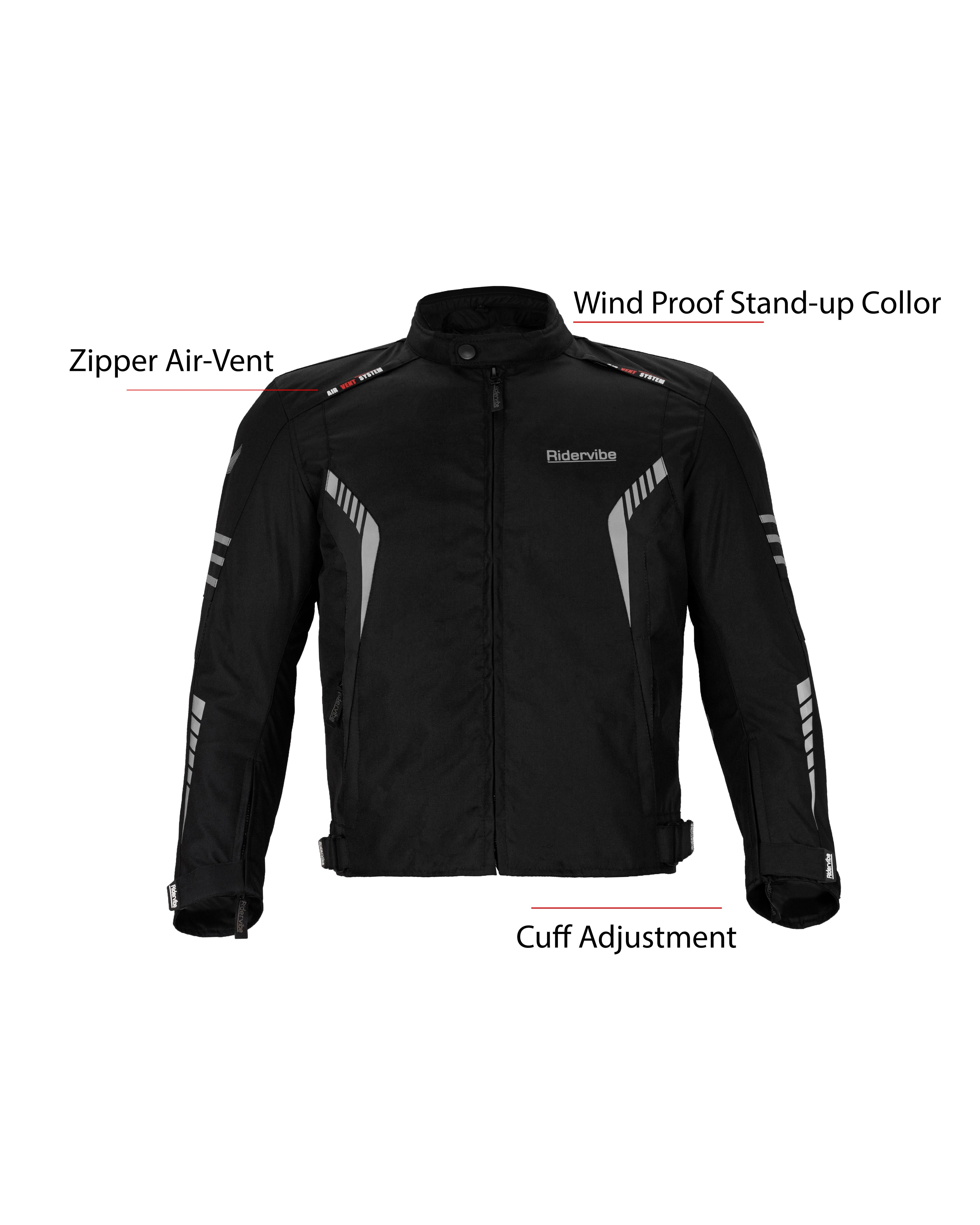 Dream Apparel Men's CE Armored Nylon & Mesh Motorcycle Black Waterproof Biker Jackets