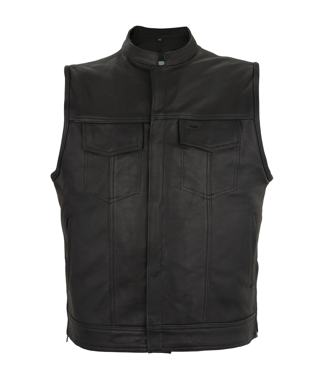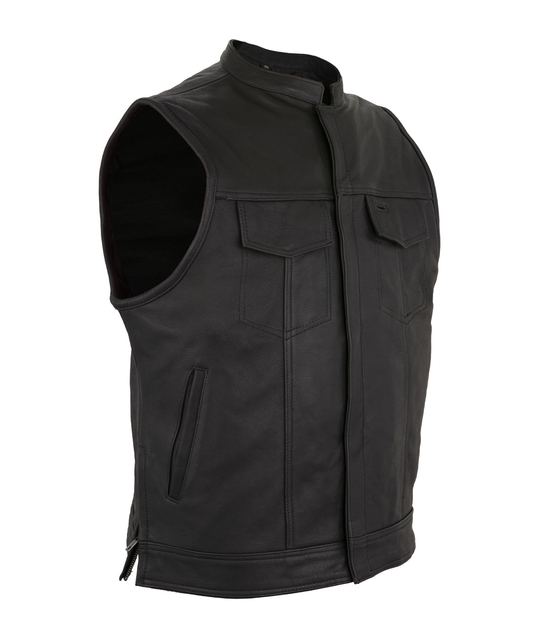 Dream Apparel Mens Motorcycle CLUB VEST Cowhide Leather, Zipper Front, Concealed Front Snaps