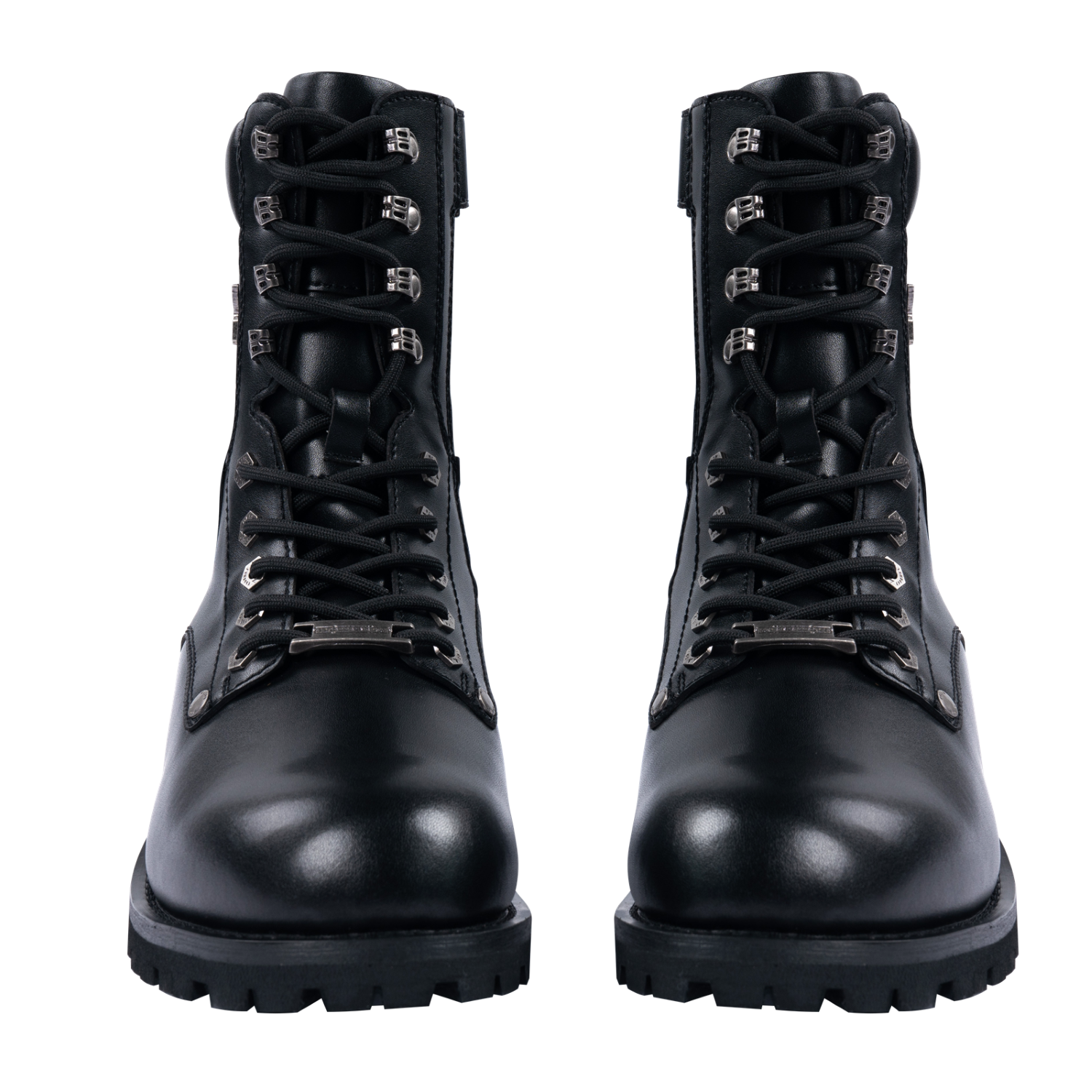Dream Apparel Men's Motorcycle Riding Boots YKK Zipper Black Faux Leather Side Zipper Low Heel