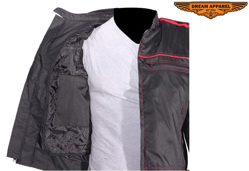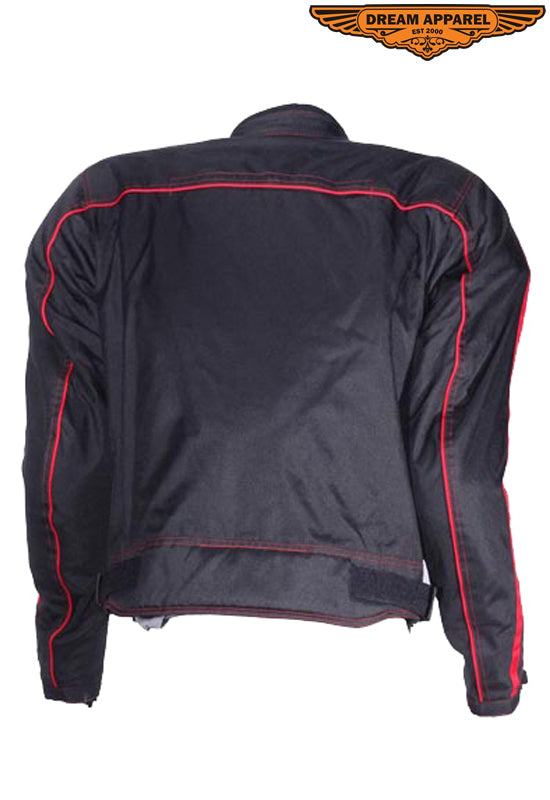 Men's Black Lightweight Textile Jacket W/ Red Stripes